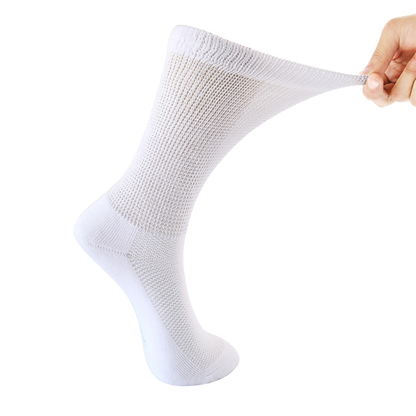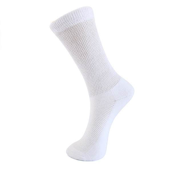 | Design 4: Light color socks are designed to prevent ulcers.Diabetic socks should be light-colored, because vascular lesions in diabetic patients lead to limb ischemia and peripheral neuropathy, resulting in loss of sensation. Patients often suffer from foot injuries and bleeding without feeling. If light-colored diabetic socks are chosen, it is easier to timely find the wound and reduce the harm. |